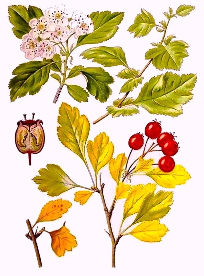 Espino albar o Majuelo(Crataegus monogyna). Es un cardiotónico indicado para regular el ritmo cardíaco en taquicardias paroxísticas y extrasístole.