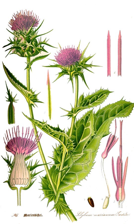 Cardo mariano(Silybum marianum). Hepatoprotector. Su uso prolongado genera efecto estrogénico. Contraindicado en pacientes con cáncer de mama. Vasoconstrictor. Eleva la presión.