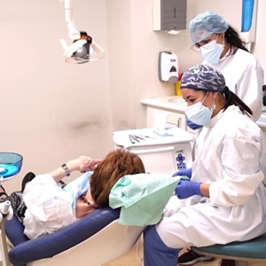Una profesora y una alumna consultan el historial electrónico de un paciente en el programa SmileSoftware antes de realizar un procedimiento clínico. Fotos: SmileSoftware