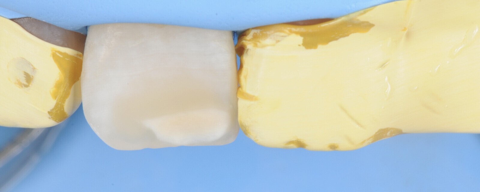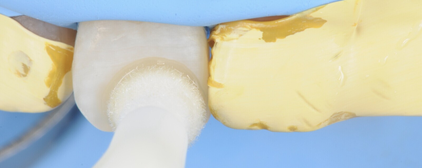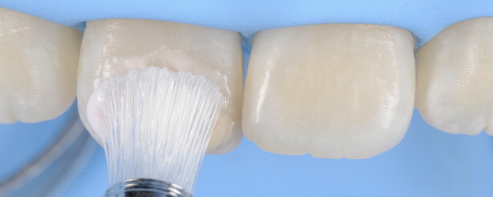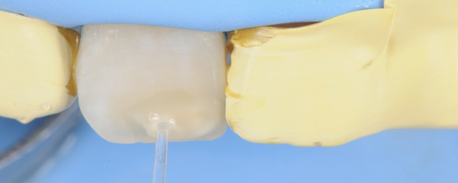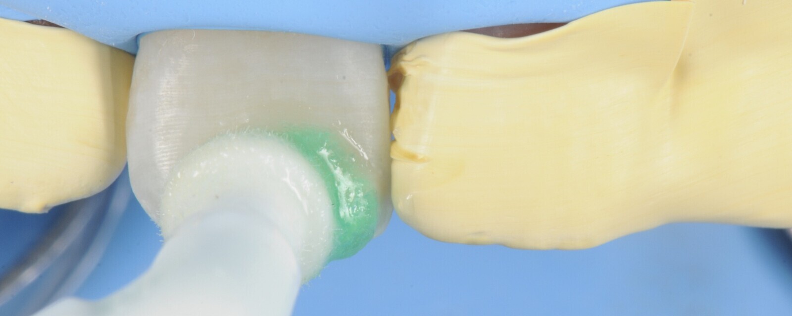 Figura 3. Después se protegen los dientes vecinos con cinta teflón.