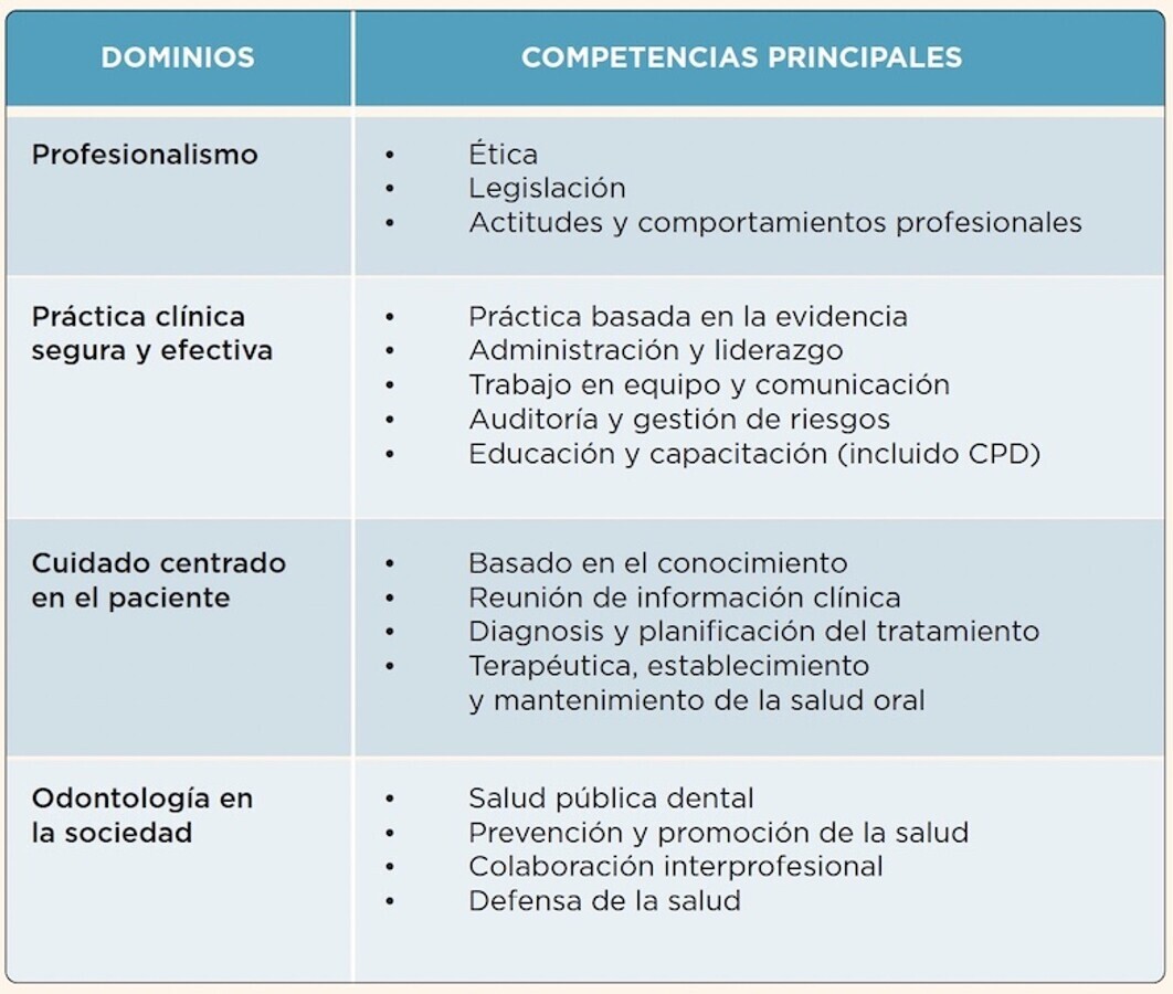 Figura 1. Dominios y Competencias Principales del Proyecto “The Graduating European Dentist”(14).