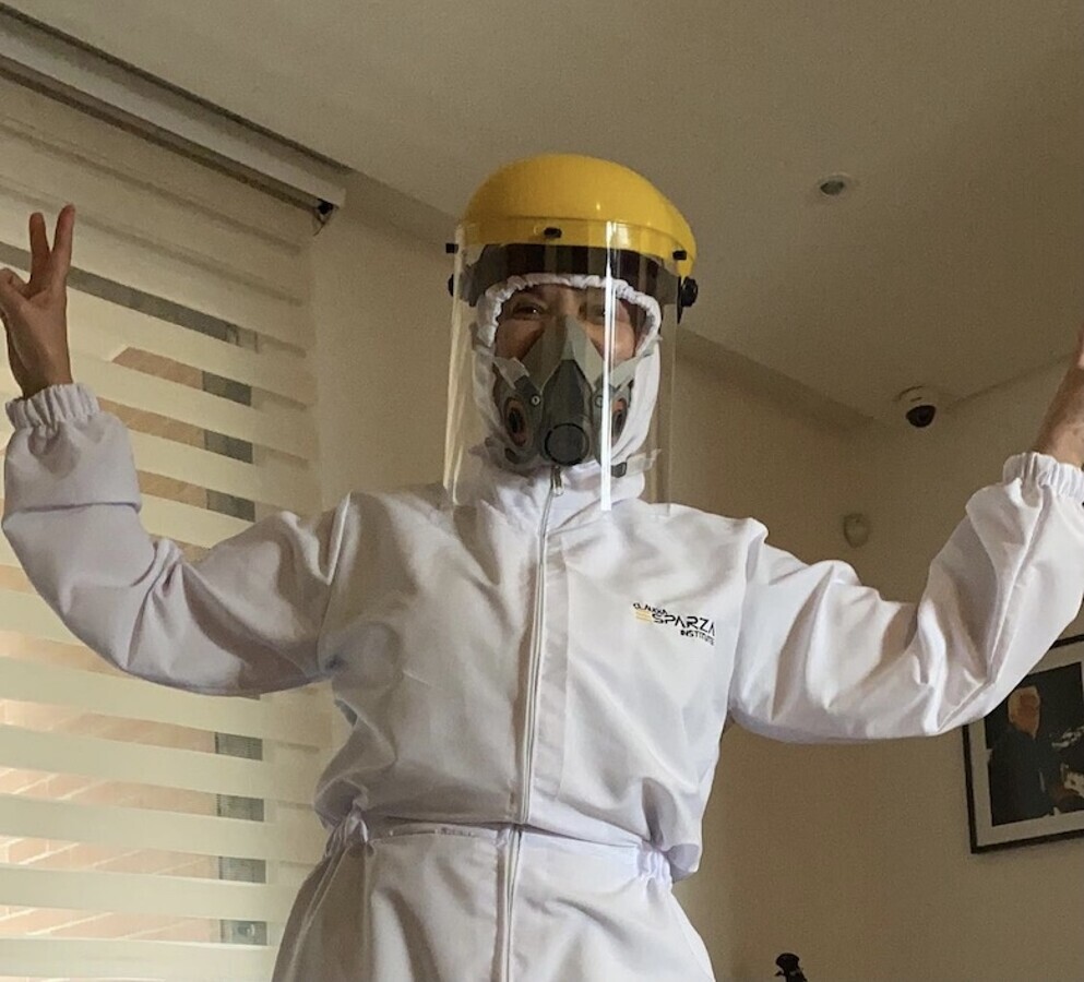 La Dra. Esparza con el traje de seguridad que sus pacientes dicen que parece de astronauta.