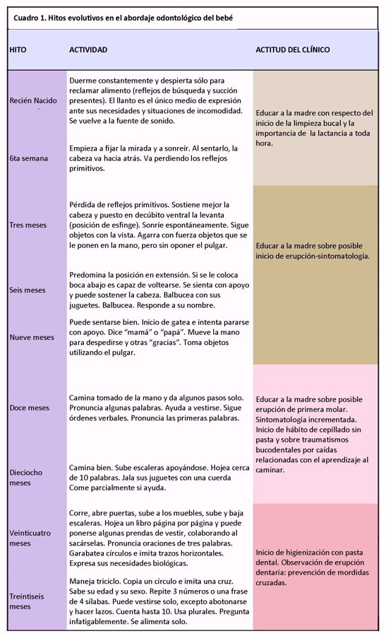 El período de la lactancia corresponde a lo que concebimos como el de la “Odontología para Bebés”1y para la mayoría de infantes abarca desde los 0 a los 3 años de edad. Es importante que el odontopediatra o el práctico general que trata niños pequeños, conozca un poco del desarrollo psicomotor a esas edades, ya que ello contribuye a un mejor manejo de la conducta en la consulta y a saber qué se puede esperar de la colaboración emocional-psicológica y motora del paciente.