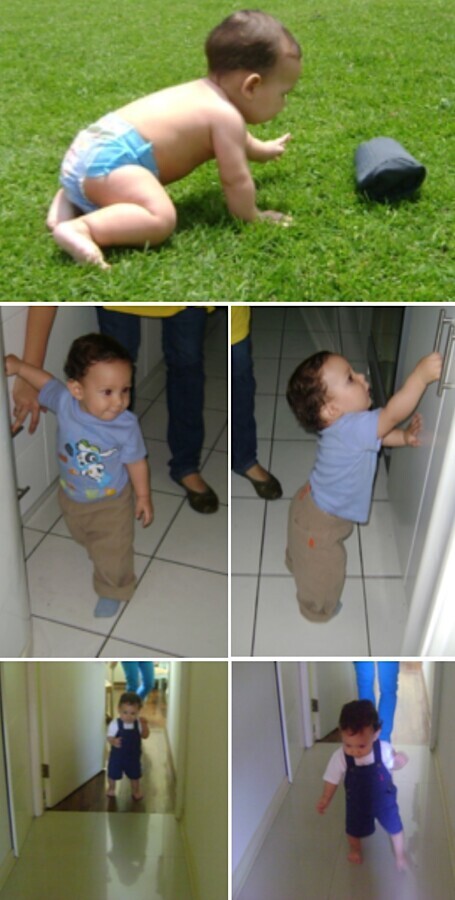 Figura 2. El proceso de caminar va desde el gateo, pasando por el uso de objetos para estabilizarse hasta el intento de los primeros pasos.