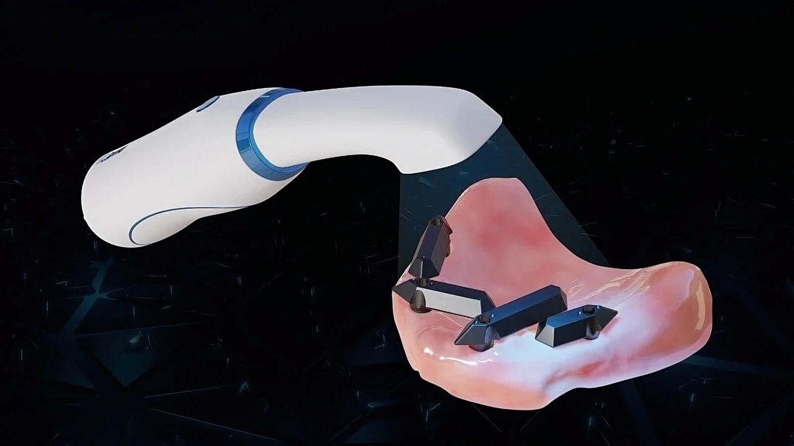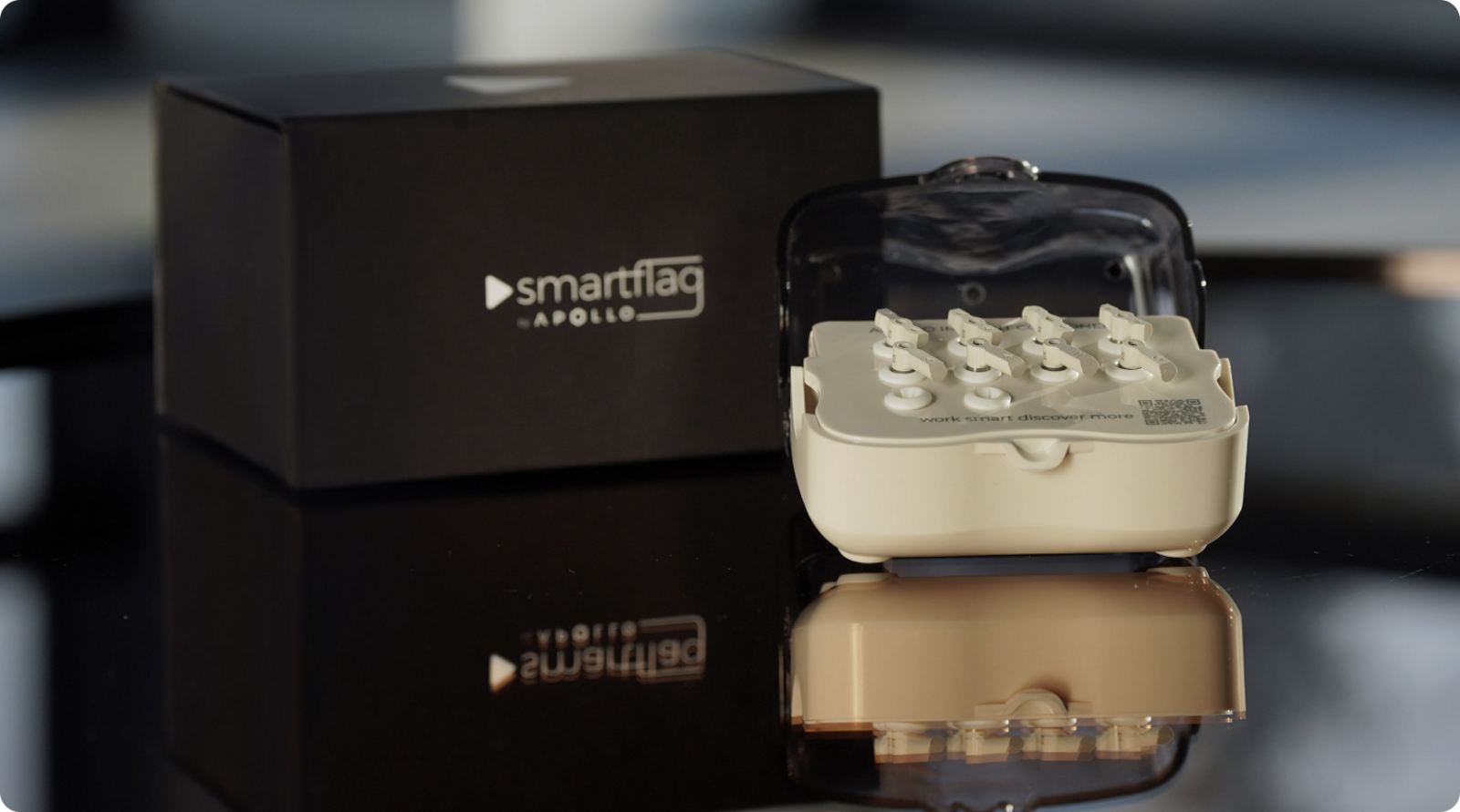Figura 9. Los puntos de referencia geométricos de los scanbodies Smarflag permiten al escáner intraoral aumentar el rango de captura para la captura de arcos edéntulos. Foto: Apollo Smart Flag