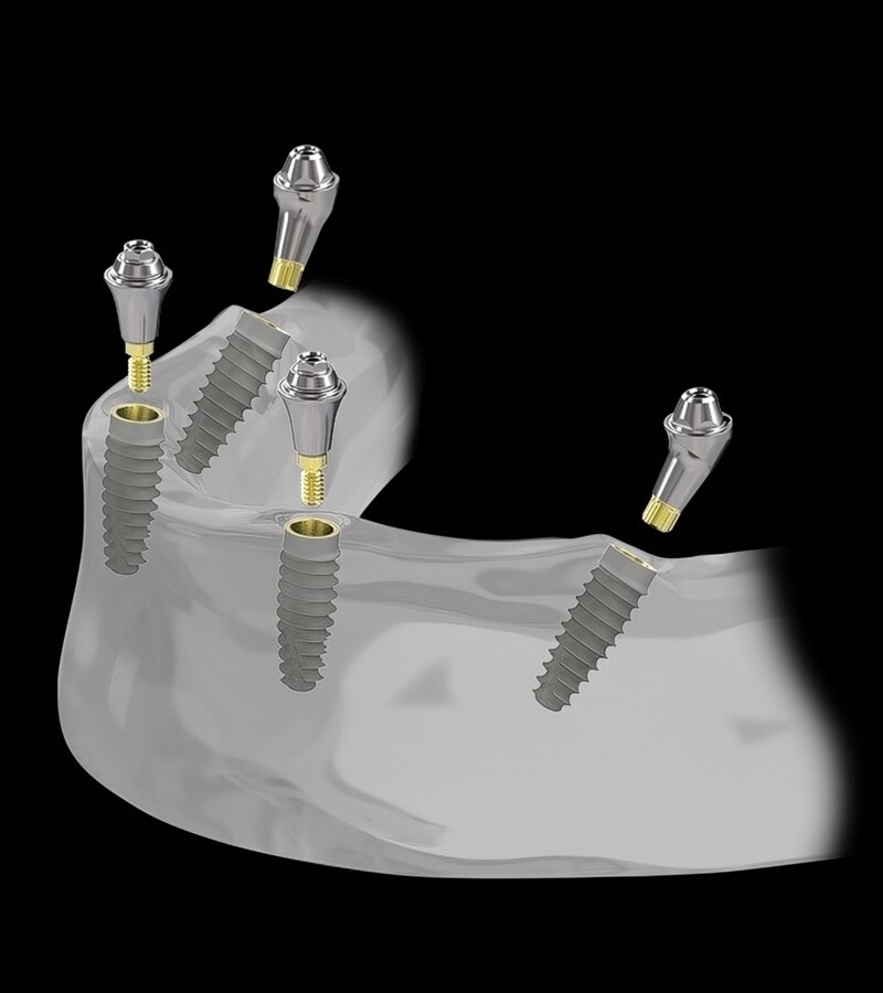 Los pilares Multi-Unit angulados para corregir la inclinación de los implantes facilitan la verticalización, mejoran la inserción protésica y optimizan el asentamiento pasivo en All-on-X. Foto: Enrique Jadad
