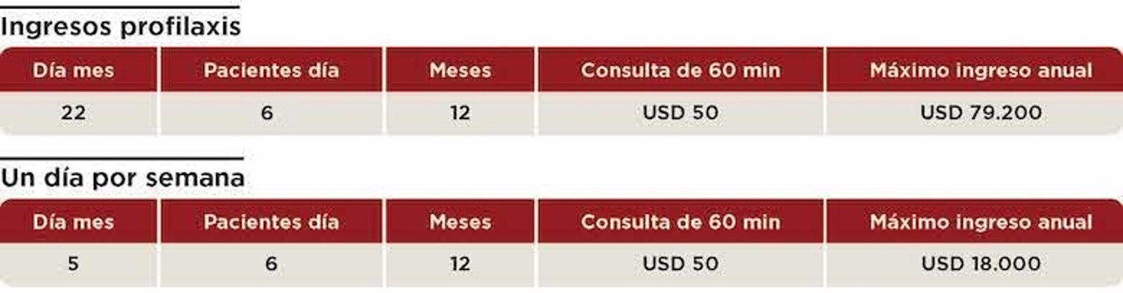 Si la clínica atiende a 6 pacientes por día durante solo 1 día por semana de cada mes, obtendría beneficios anuales por valor de 18.000 dólares.