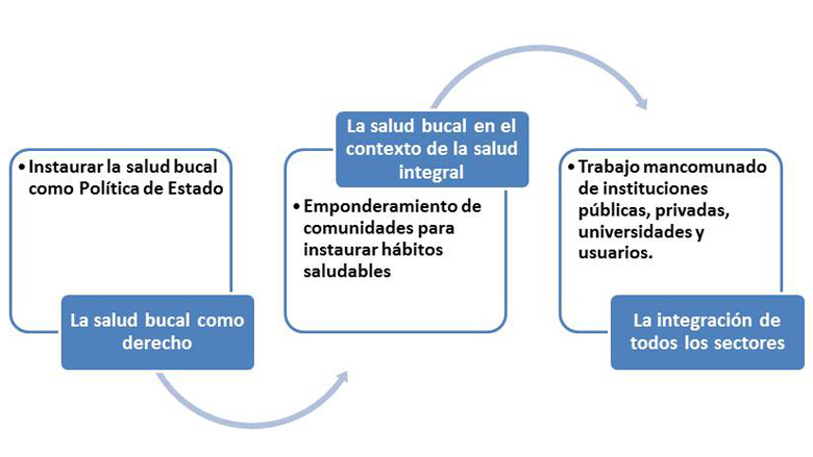 Todos los sectores, en forma conjunta, pueden integrarse en un proceso democrático para la construcción de políticas y estrategias en salud bucal, mediante la planificación de planes y programas nacionales, que respondan a las necesidades y prioridades de cada área de intervención.