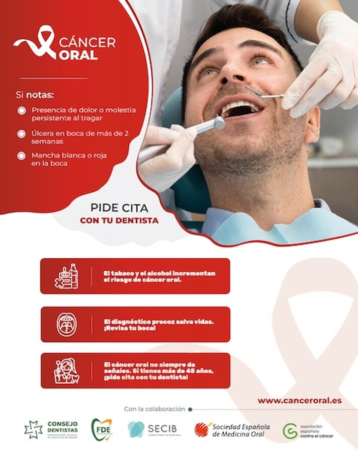El Consejo General de Dentistas lanzó su 6ª Campaña de Cáncer Oral, una iniciativa a la que se han adherido cerca de 800 clínicas odontológicas de toda España. La campaña cuenta con la colaboración de la Sociedad Española de Medicina Oral (SEMO), la Sociedad Española de Cirugía Bucal (SECIB) y la Asociación Española contra el Cáncer (AECC).