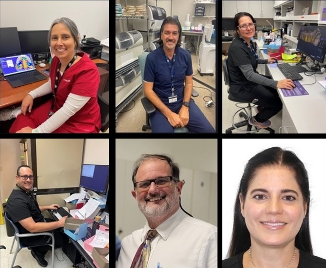 El Digital Dentistry Team de NSU está compuesto por la Dra. Gladys Uzcategui, (arriba a la izquierda); el Técnico Dental Marko Demicheli, (centro) y la Técnico Dental Indhira Zabaleta, (derecha). En la parte inferior aparecen desde la izquierda, el Dr. Iván Sánchez, el Técnico Dental James Walls y la Dra. Mabel Maroun.