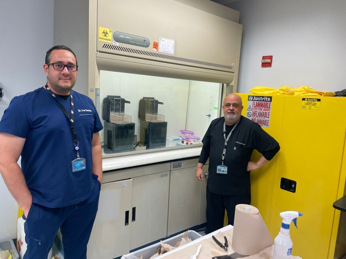El Dr. Iván Sánchez, encargado de casos complejos, experto diseñador digital y gran conocedor del funcionamiento de los equipos digitales, con el Dr. Guerrero.