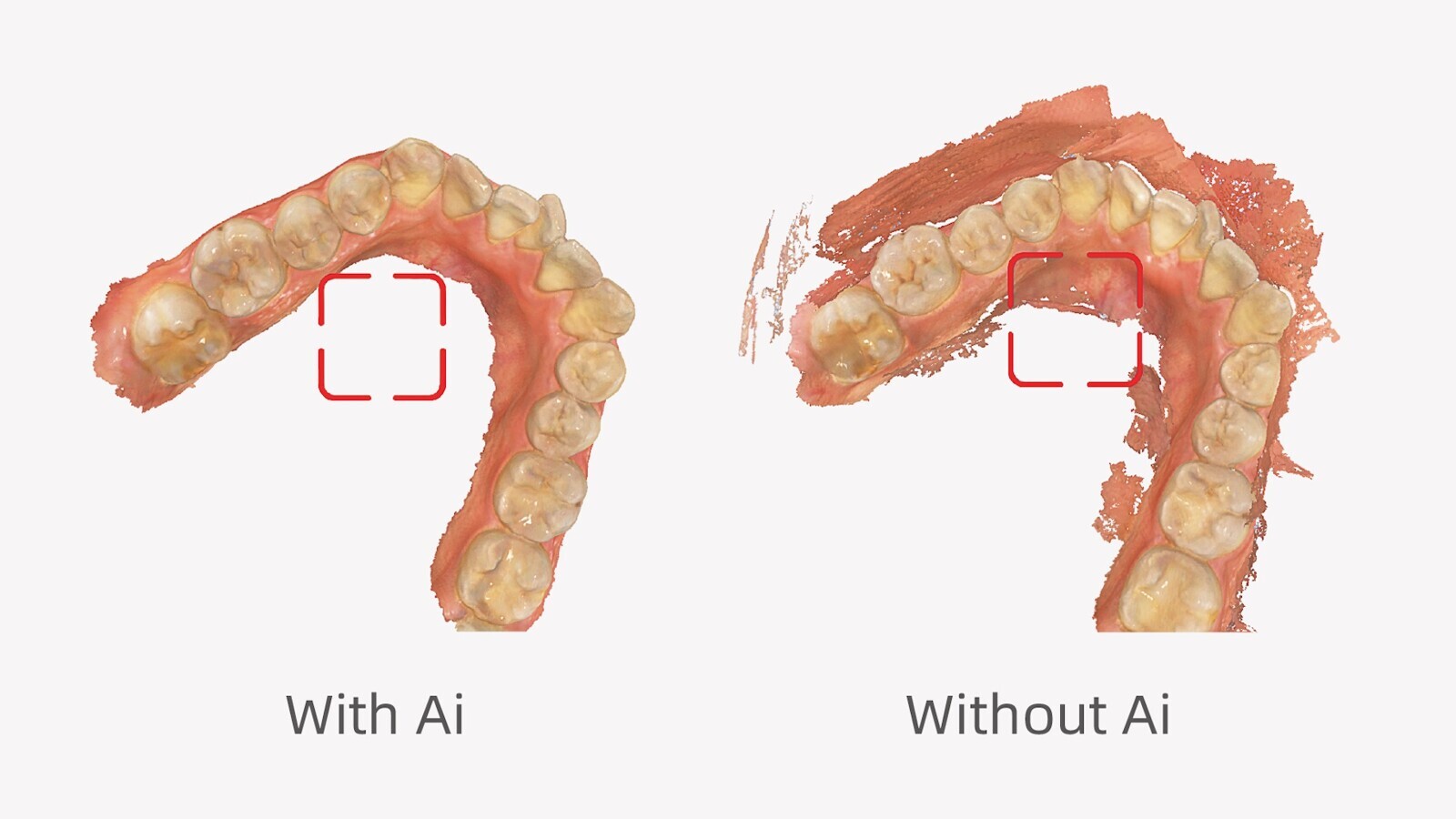 El escáner Aoralscan 3 de SHINING 3D cuenta con la función de Inteligencia Artificial, que permite que no se capten dedos, lengua, labios, espejos, retractores o cualquier artefacto diferente a dientes y periodonto.