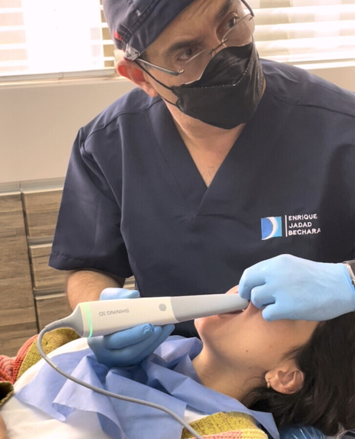 El Dr. Enrique Jadad escanea un modelo para comprobar la precisión del escáner en captar la forma de los dientes, su color y textura. (Foto: Enrique Jadad)