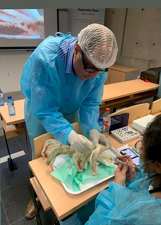 El Dr. Herrera impartiendo un taller hands-on sobre implantología oral en la Universidad de Barcelona.