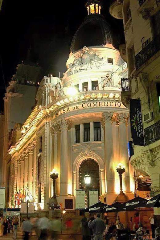 La Bolsa de Comercio de la ciudad al comienzo de la zona peatonal.