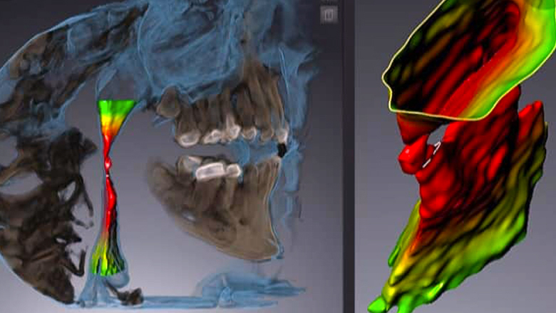 La imagen tridimensional de la paciente permite visualizar la capacidad de las vías aéreas y su posible obstrucción.