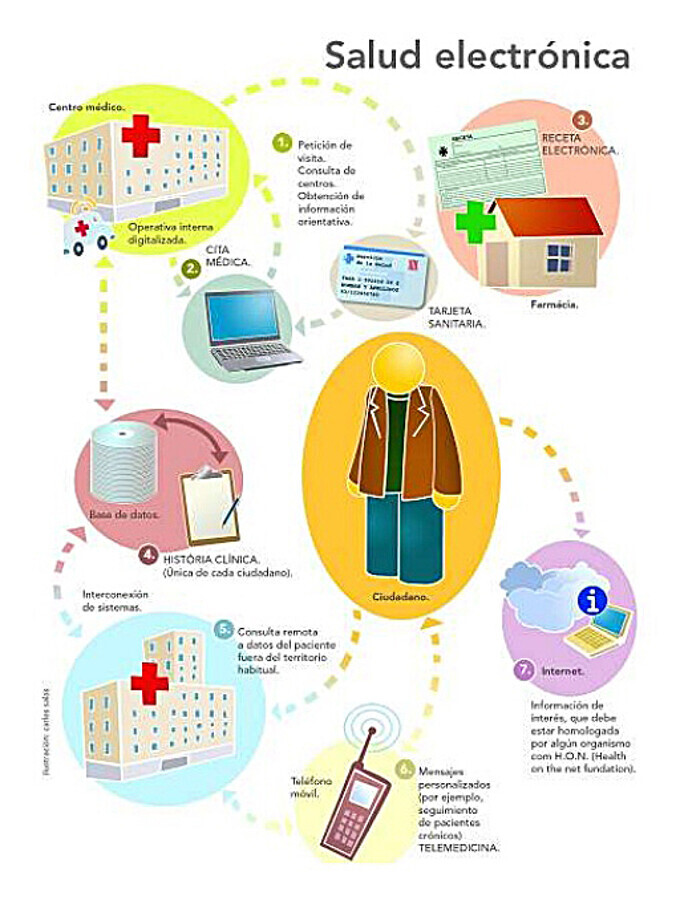 La cibersalud o e-Salud se basa en un registro en formato electrónico de información de salud del paciente que ayuda a los profesionales en la toma de decisiones y el tratamiento.