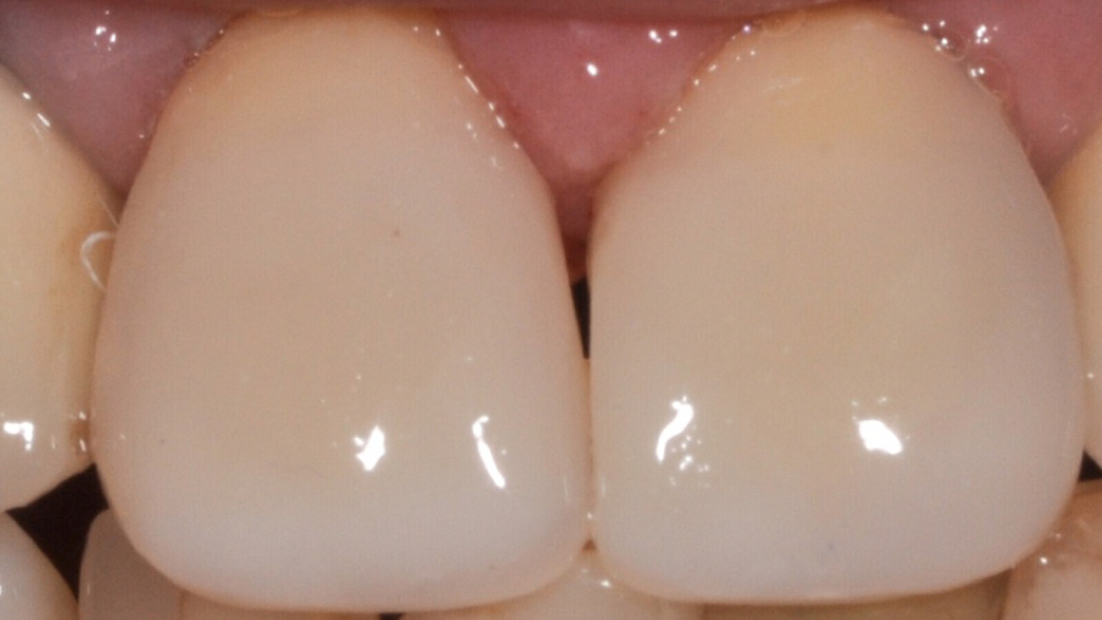 Fig. 2. Restauración del mismo paciente hecha por el autor hace 5 años, en este caso bien fotocurada.