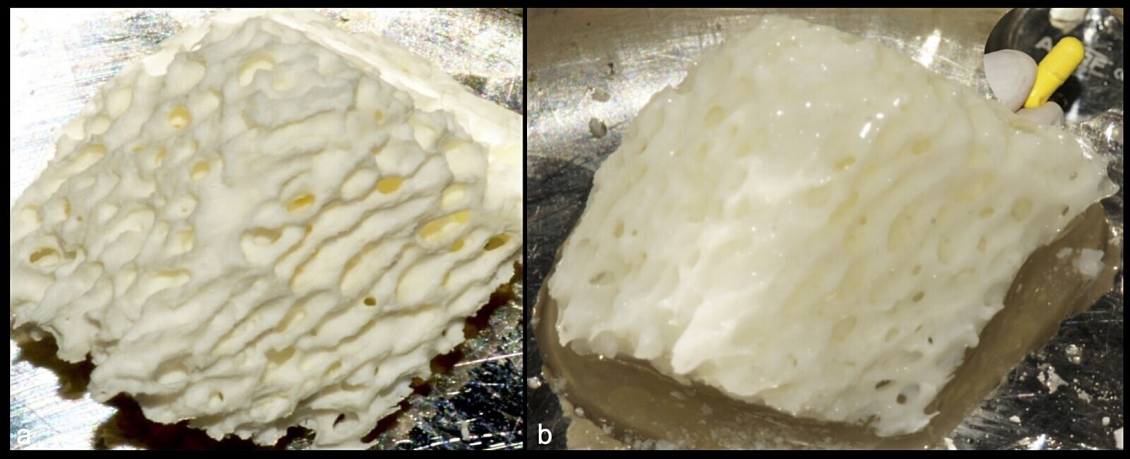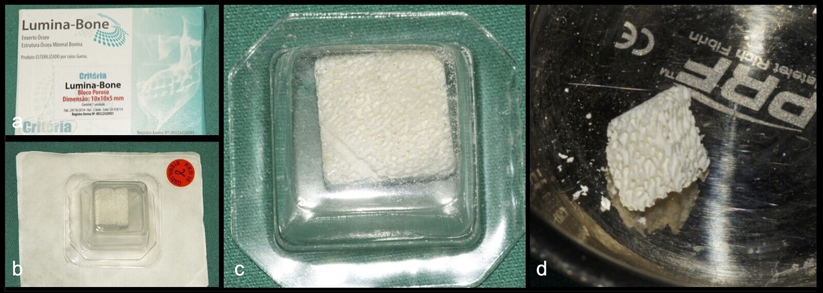 Figura 20. Biomaterial de relleno óseo: xenoinjerto bovino en bloque (a, b, c, d).