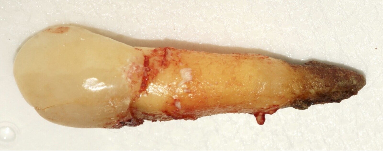 Figura 3. Concrescencia a nivel apical en la pieza extraída.