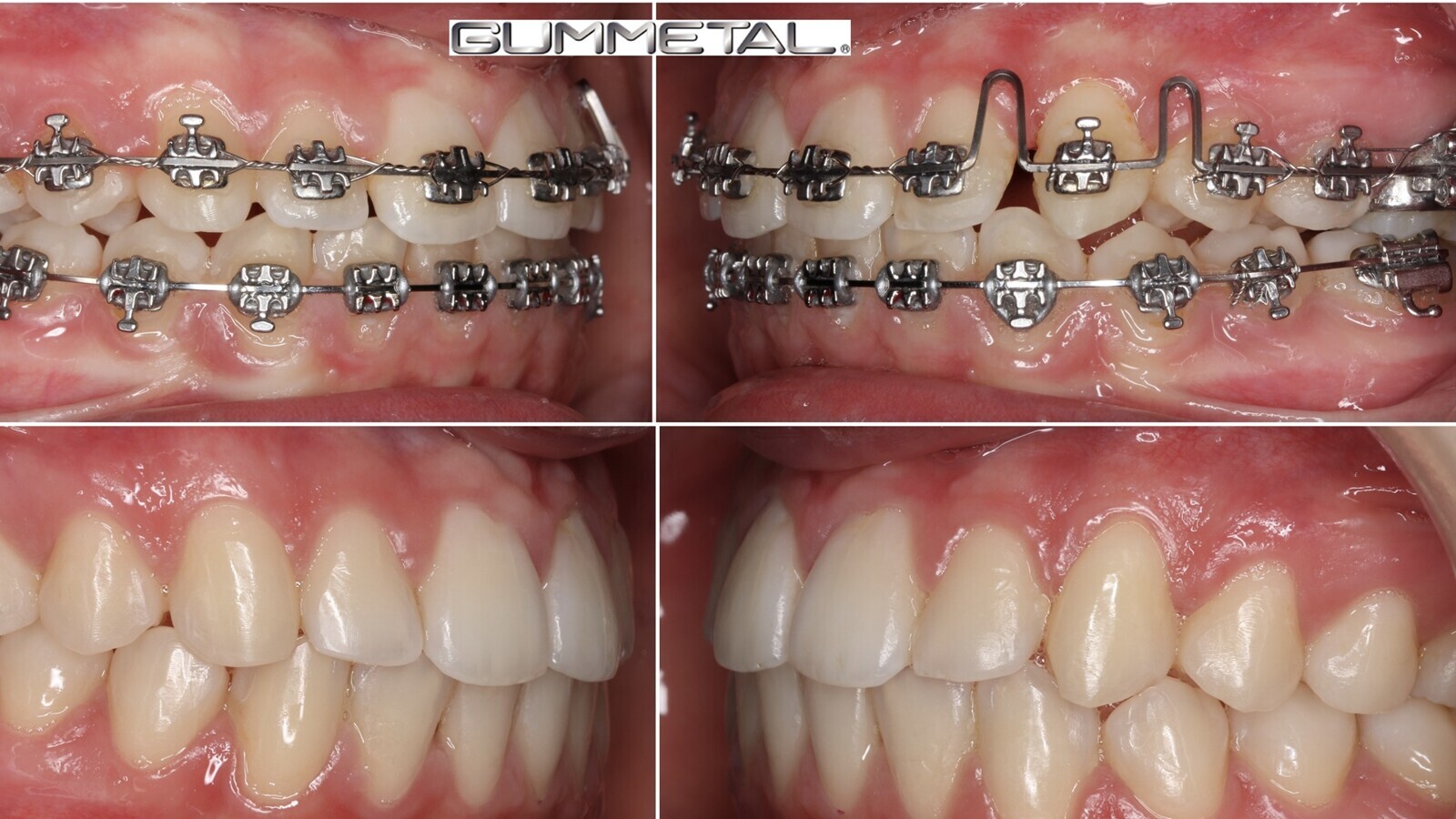 Una vez que se ha conseguido colocar en arcada la corona del canino, hay que realizar el trabajo hercúleo de dar torsión negativa a su raíz. Para ello recomendamos el uso de resortes en aleaciones de TMA o Gummetal con arcos gruesos (mínimo de 0.019x25”) y hacer entender al paciente la necesidad de tiempo para que el movimiento de torsión radicular negativa se produzca (figuras 17 y 18).