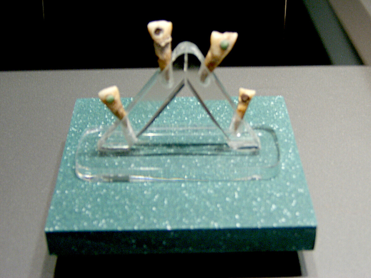Fig. 8. Dientes mayas con incrustaciones de piedras semipreciosas.