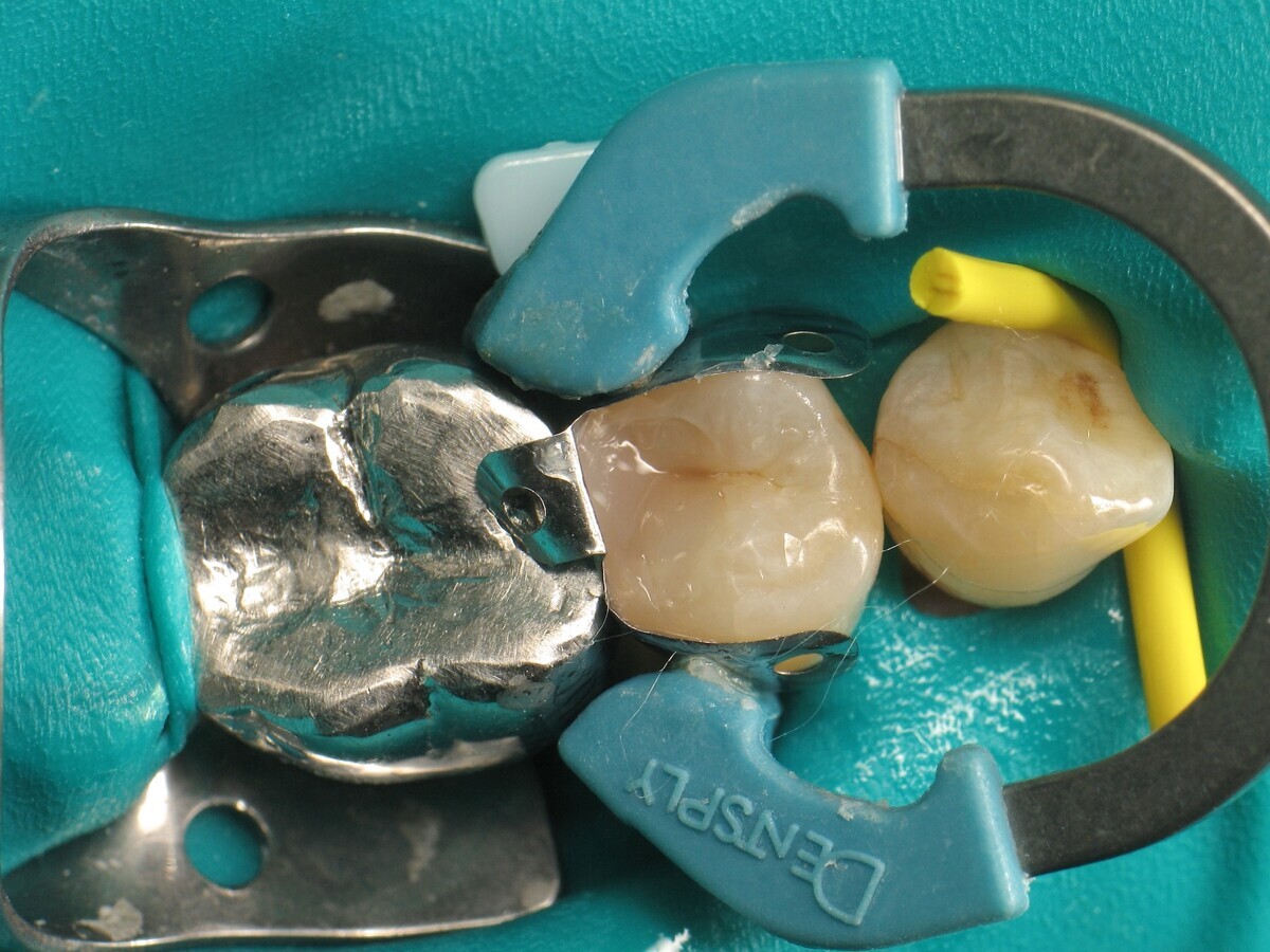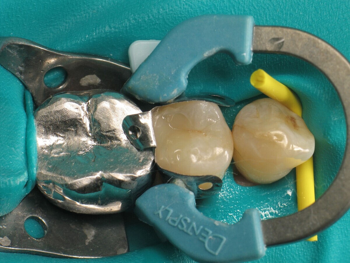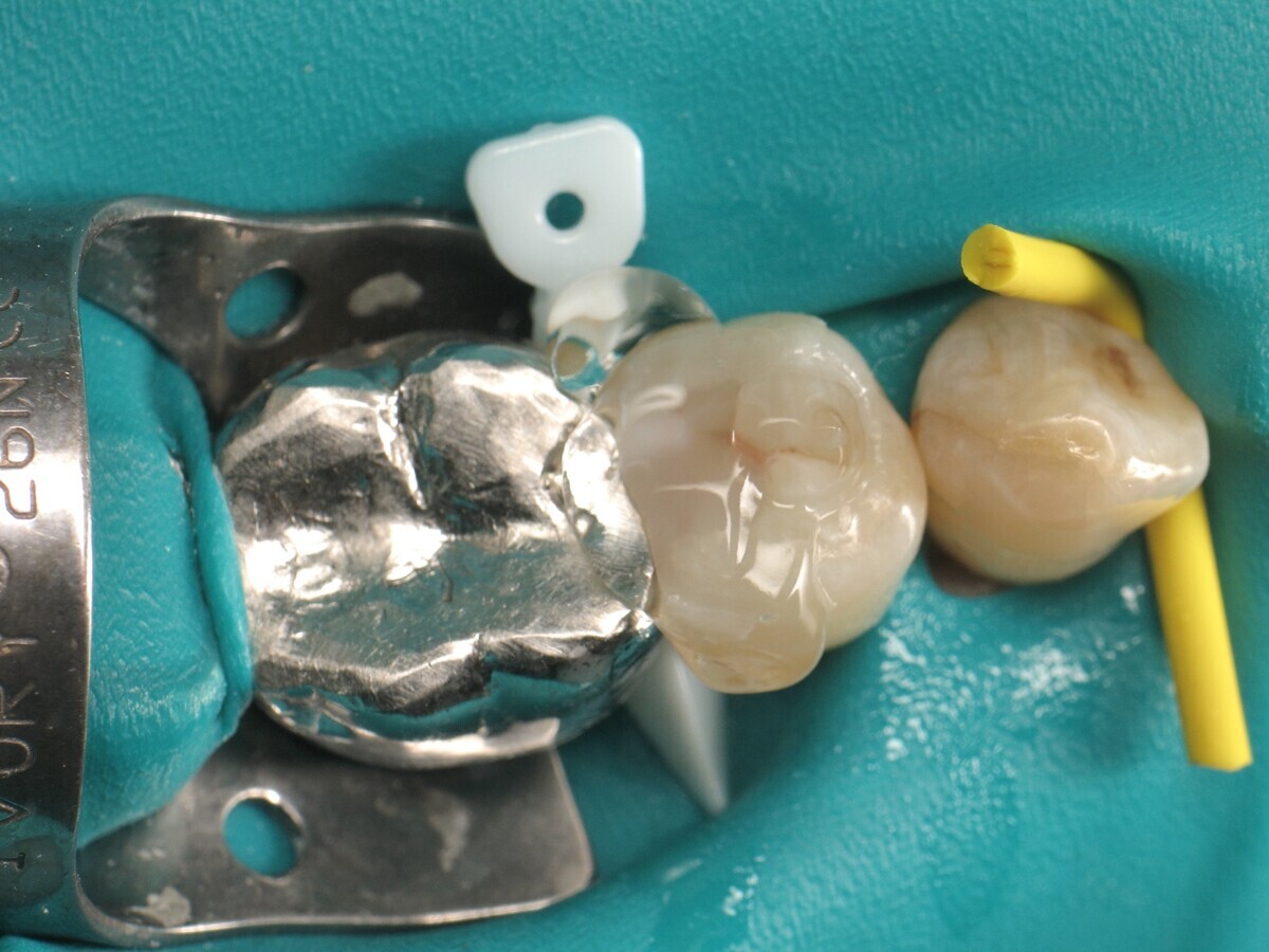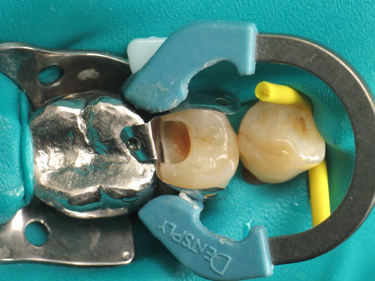 En un artículo anterior demostramos la capacidad de los composites termoviscosos1,2. Tras el calentamiento, el profesional puede manipular el composite fácilmente durante un período suficientemente largo. Incluso es posible aplicar una almohadilla oclusal para reproducir la anatomía preoperatoria si ésta no se ve afectada. A continuación, explicamos el protocolo de trabajo en una restauración proximal.