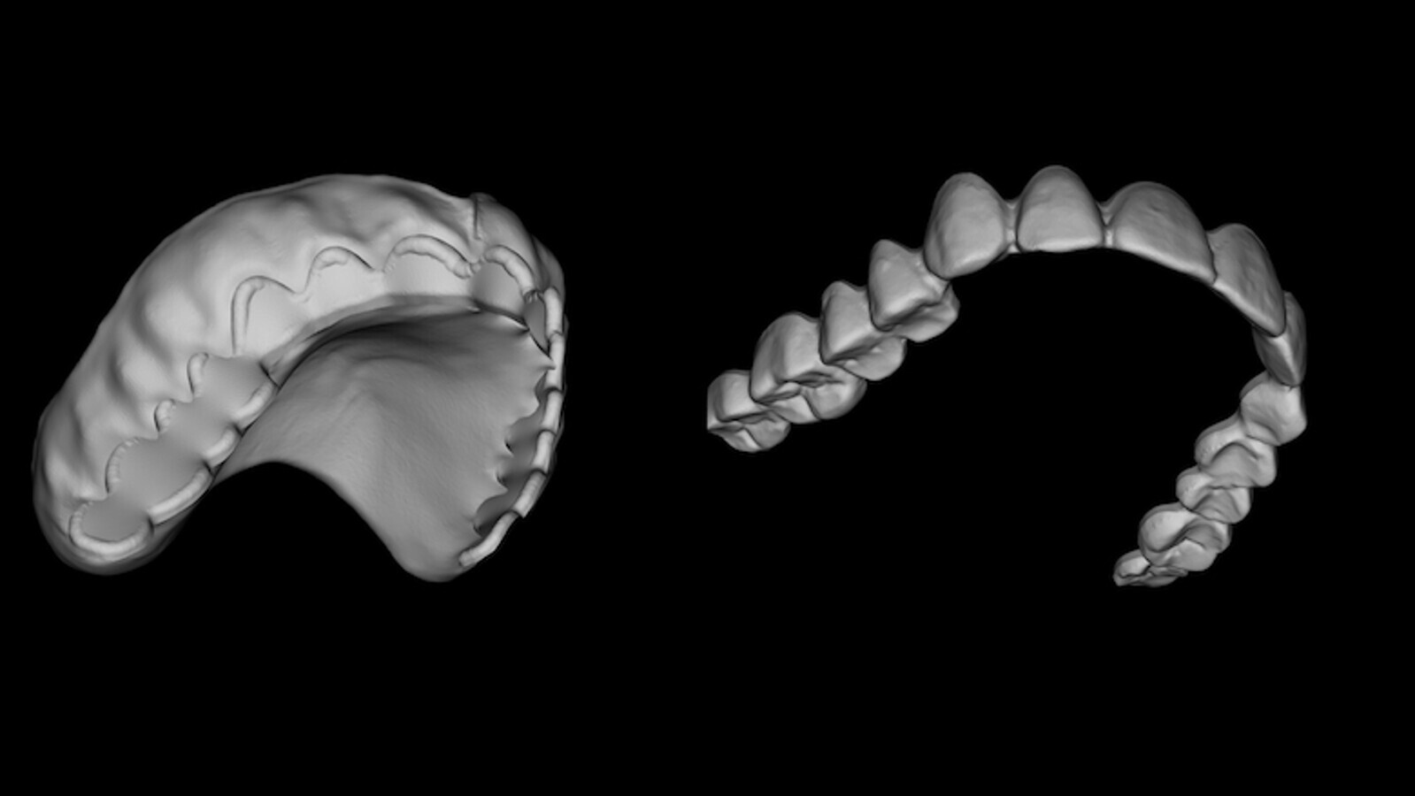 En la odontología analógica, la confección de dentaduras implica numerosos y meticulosos pasos. Una alternativa es enviar la prótesis del paciente al laboratorio dental para ser copiada. En odontología digital, se puede crear una copia de esta dentadura de una forma mejor y más rápida.