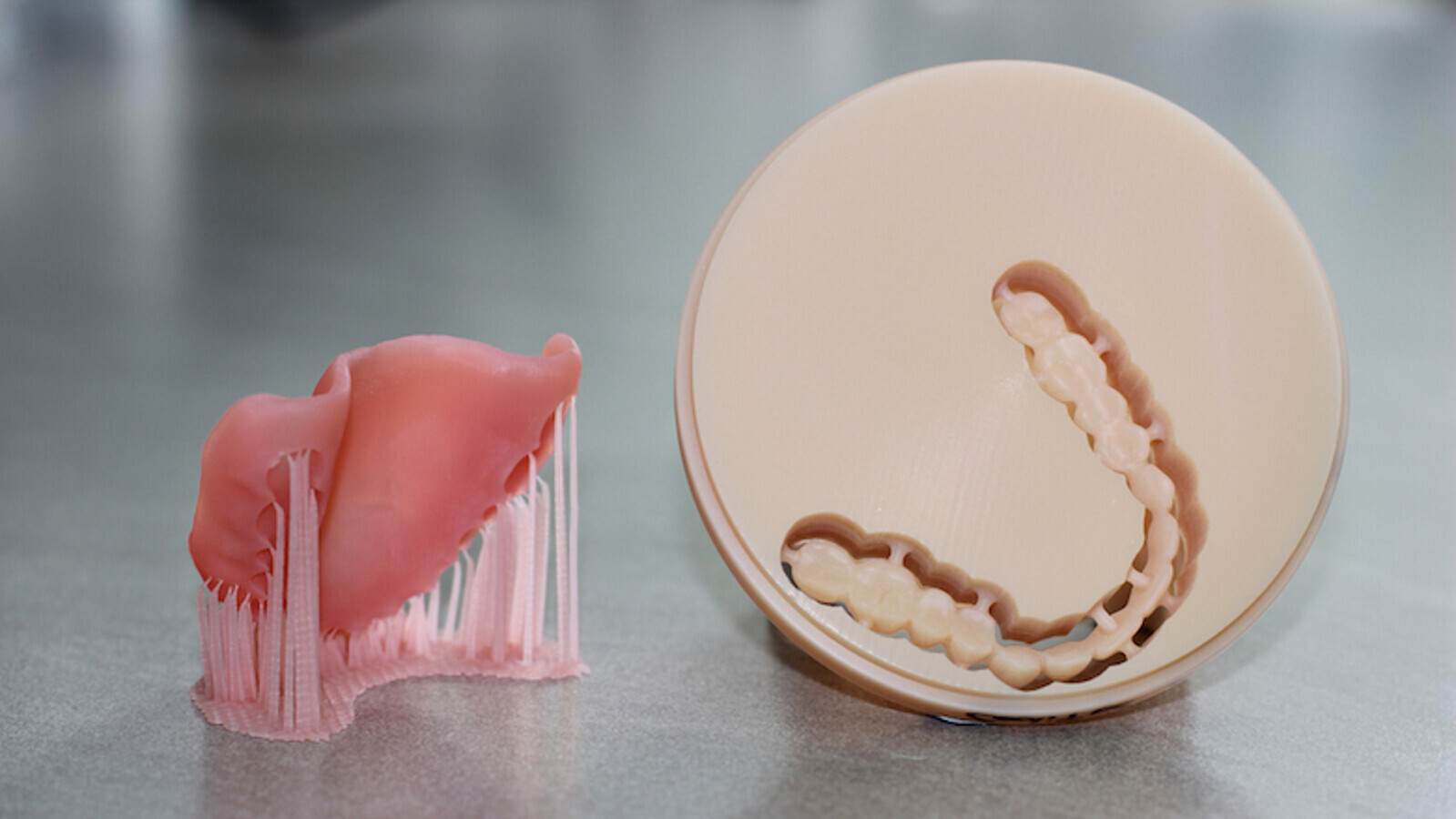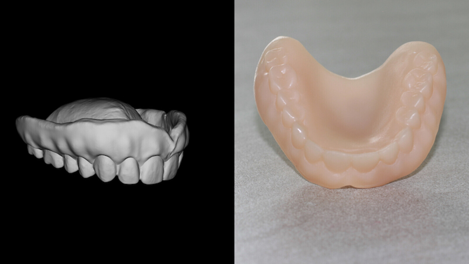 Figura 12. Archivo STL y dentadura de prueba impresa en 3D.