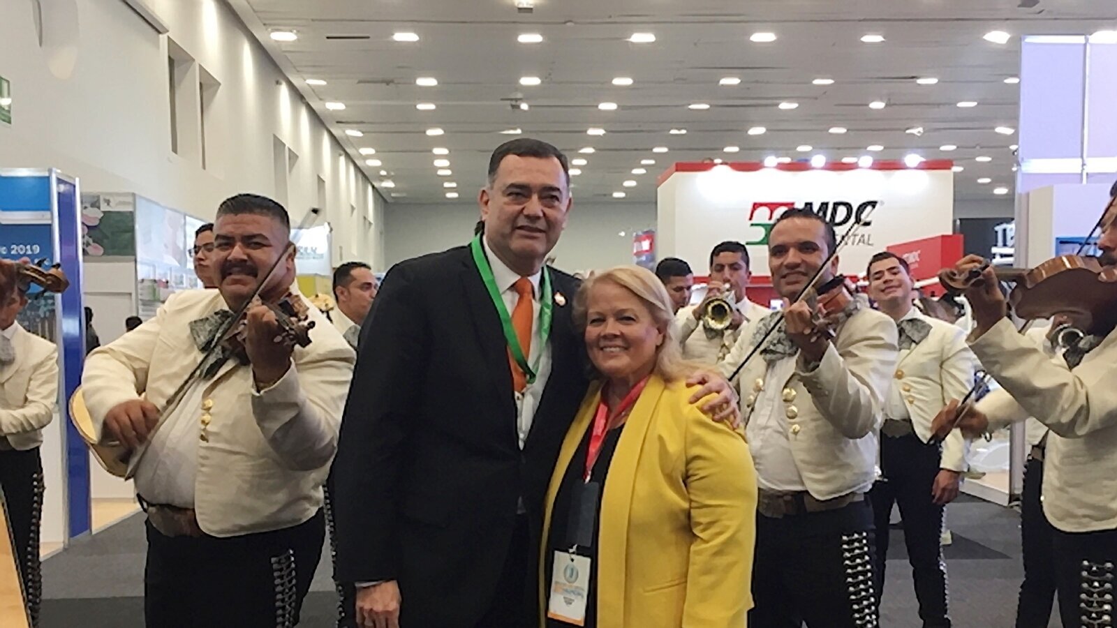 Juan José Ulloa, director de Expo ARIC Dental, junto a Carmen Medrano y un grupo de Mariachis que recorrieron la exposición alegrando a los asistentes. Fotos: Javier de Pisón
