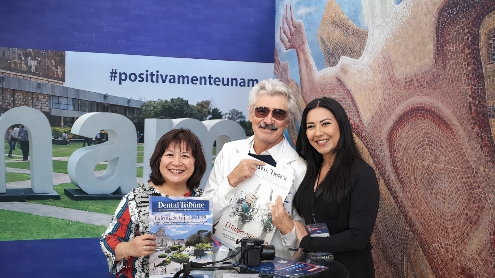 El Dr. Enrique Edwards, Director de Servicios Audiovisuales de la Facultad de Odontología de la UNAM (centro), con Maritza de los Ríos (derecha), delegada de Dental Tribune en México. Foto: Maritza de los Ríos