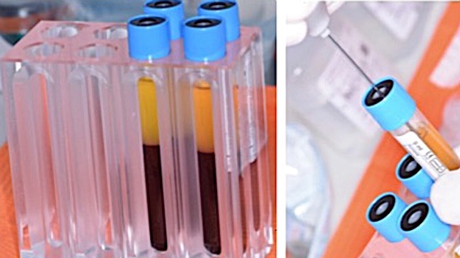 Figs. 2a-2b. Centrifugado del Plasma Rico en Plaquetas. Aspiración de la fracción 2 del contenido centrifugado.