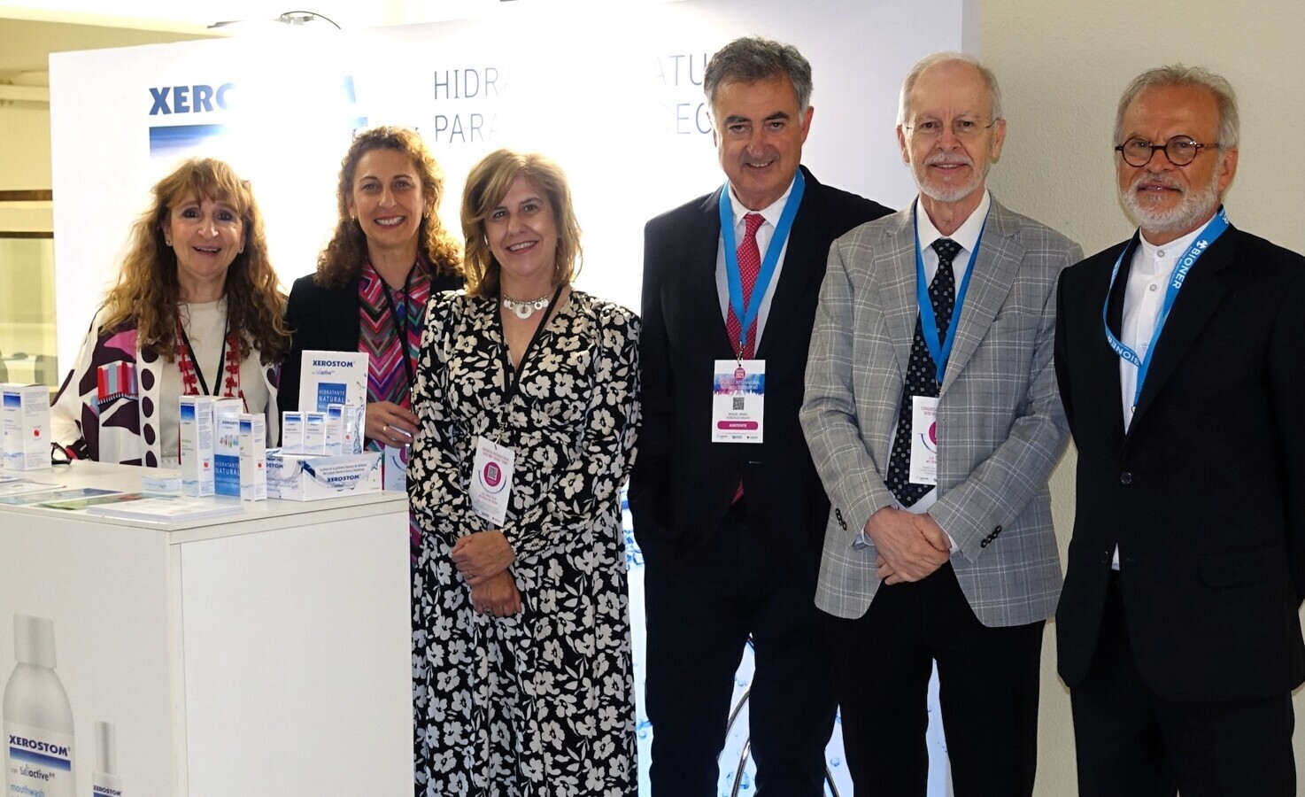 Directivos de las sociedades científicas visitan los stands de Xerostom (arriba) y de la revista "Odontólogos de Hoy" (debajo) en la exposición comercial.