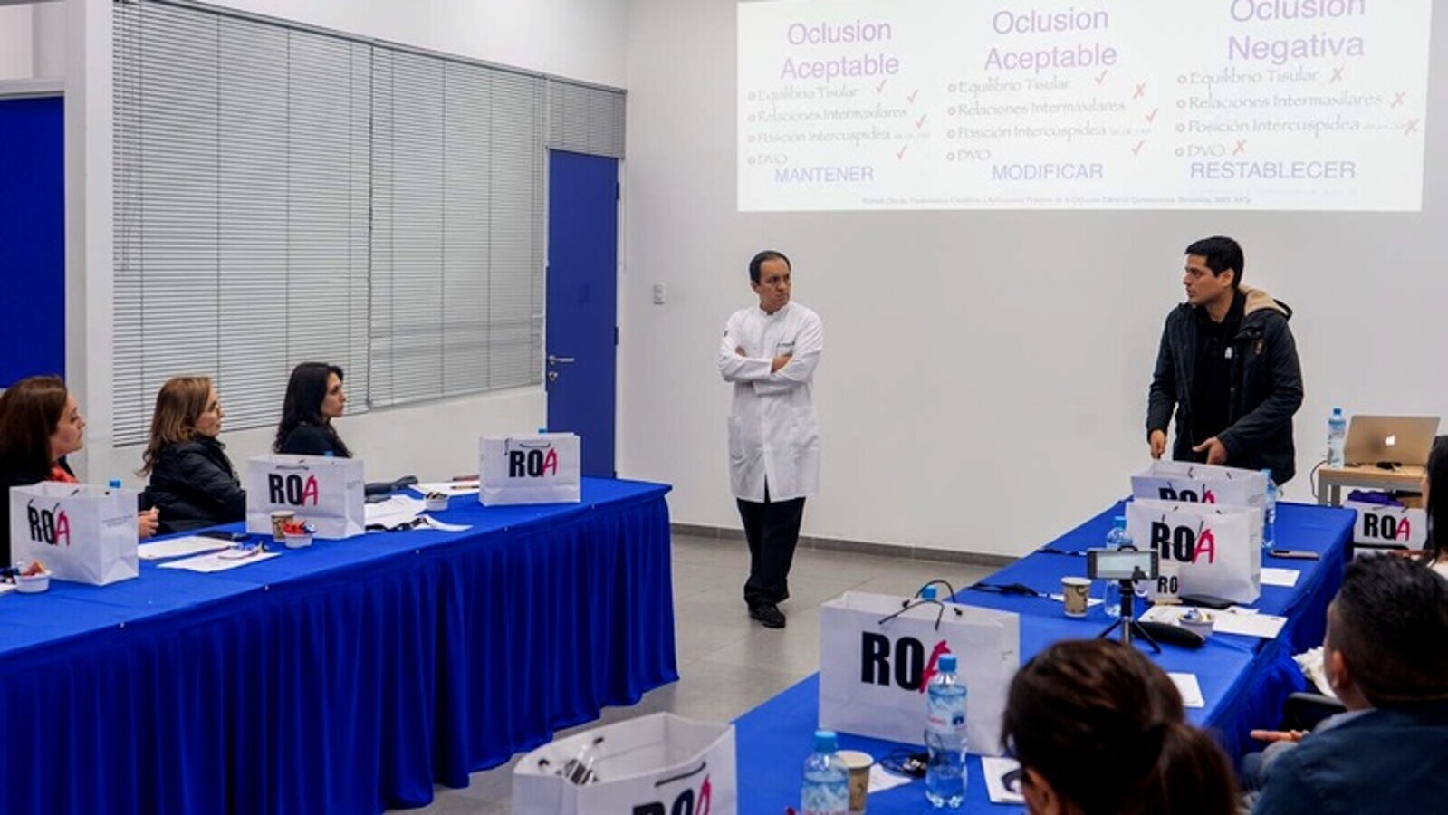 El Dr. Roberto Tello impartiendo un taller práctico sobre la Filosofía ROA (Rehabilitación Oral Adhesiva).