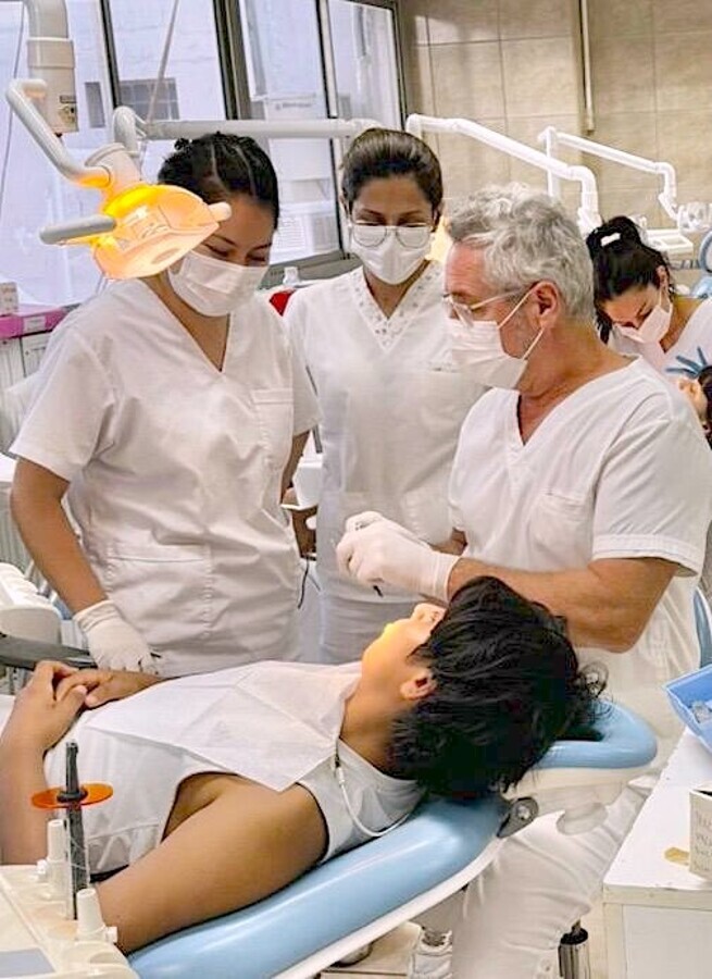 El Dr. Brian Murdoch, que impartirá dos conferencias en el FDI Regional Congress 2025, tratando a una paciente en Buenos Aires.