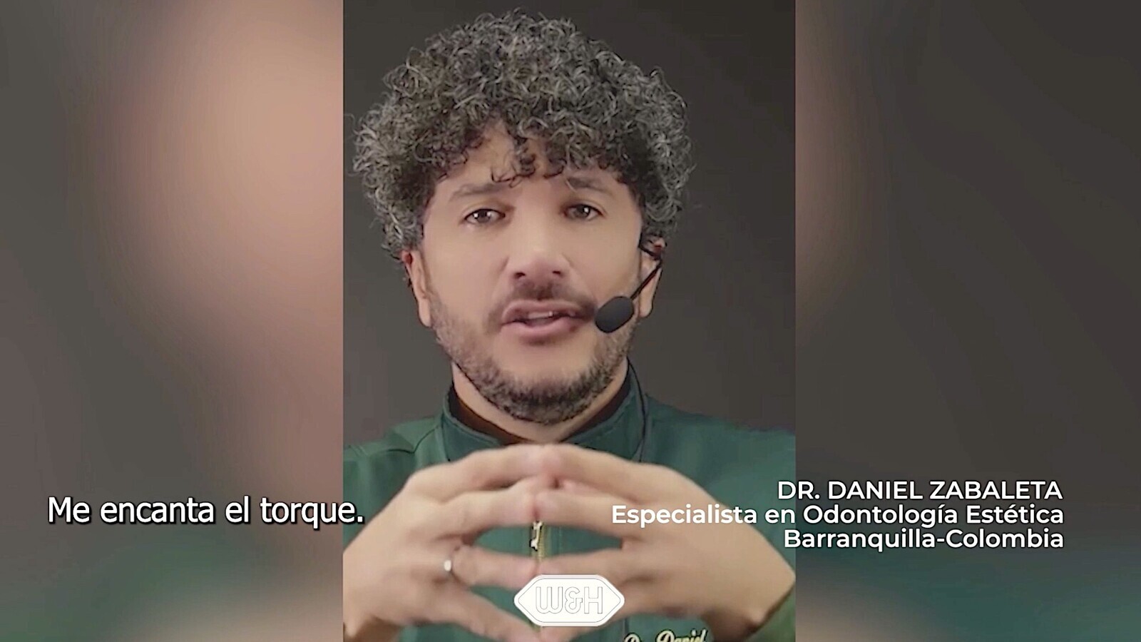 El Dr. Daniel Fernando Zabaleta Díaz, especialista colombiano en estética dental que utiliza el micromotor eléctrico de W&H, destacó el impresionante torque que tiene el dispositivo y citó como ejemplo de ello que cuando se corta un cordal la fresa nunca se detiene.