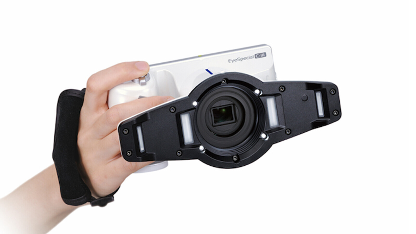 La combinación de las fotos con la función de dibujo/edición, que permite tomar notas directamente en las imágenes, es un atributo único para una evaluación efectiva del tratamiento o una discusión sobre el progreso o los desafíos asociados con la modalidad. Diseñada para proporcionar funcionalidad, la cámara ultraligera (pesa aproximadamente 1 libra) la cámara EyeSpecial C-III cumple con todos los protocolos de control de infecciones. El cuerpo de la cámara es resistente al agua, a los químicos y al rayado, y puede desinfectarse con un paño de esterilización, lo que reduce la posibilidad de contaminación cruzada.