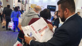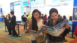 Un grupo de odontólogos lee AMIC Today, el periódico de ferias de Dental Tribune.