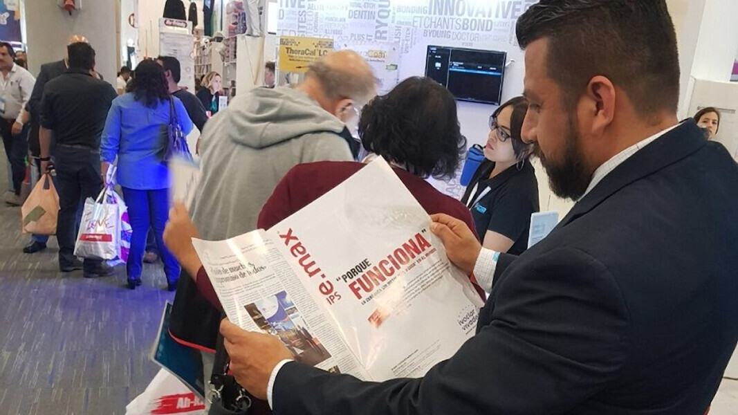 Mirando el anuncio de Expo AMIC Dental publicado en Dental Tribune.