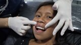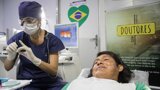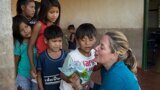 Figura 8. Fabiana Schleder Ruiz, Global Marketing Manager de Dentsply Sirona, distribuyendo kits de cuidado dental a la población local.