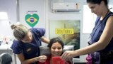 Figura 2. Registro de pacientes en la improvisada sala de espera en la selva brasileña.