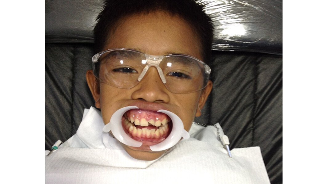 Caso clínico. Figura A. Jorge, de 11 años, solicitó el tratamiento de una fractura en la corona del diente 21.
