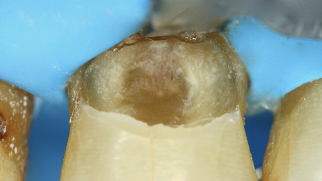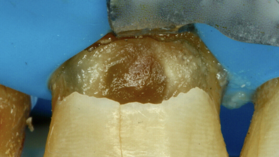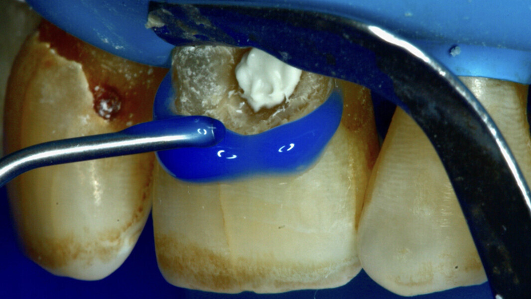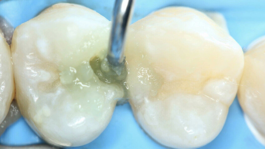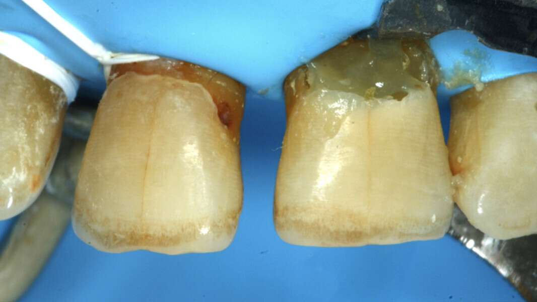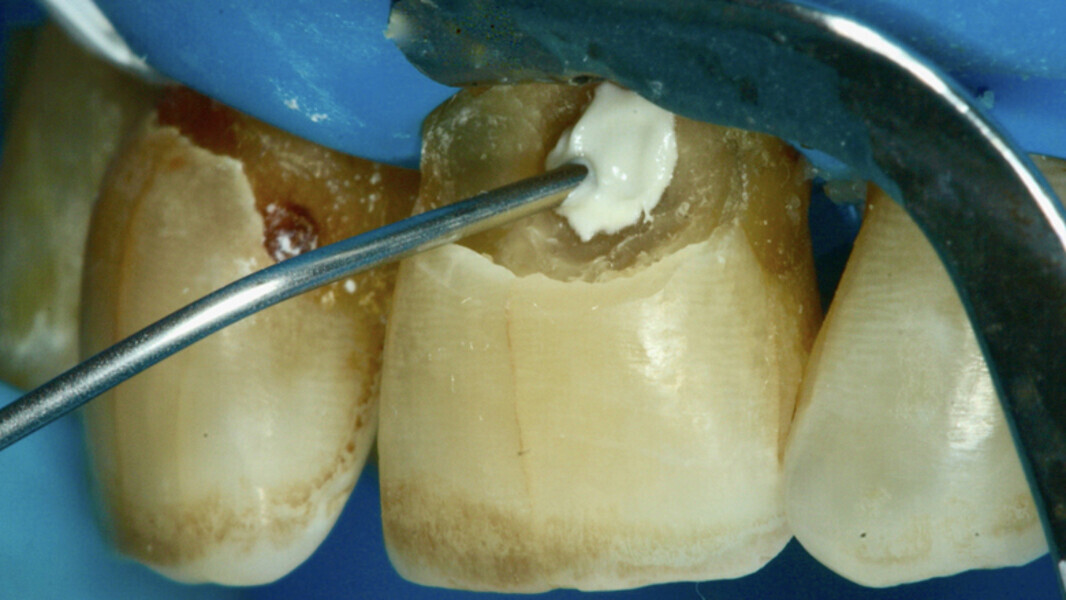 Figura 4. Remoción químico-mecánica del tejido cariado utilizando el agente enzimático Brix3000 durante 2 minutos.