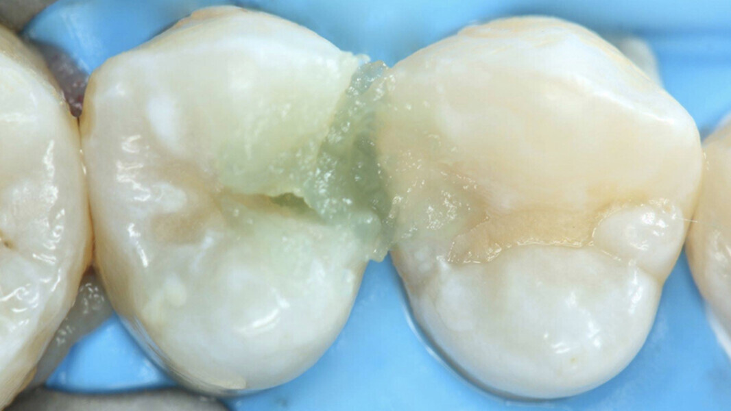 Se coloca silicato de calcio modificado por resina por la proximidad a la pulpa.