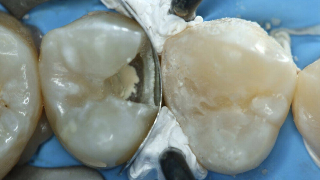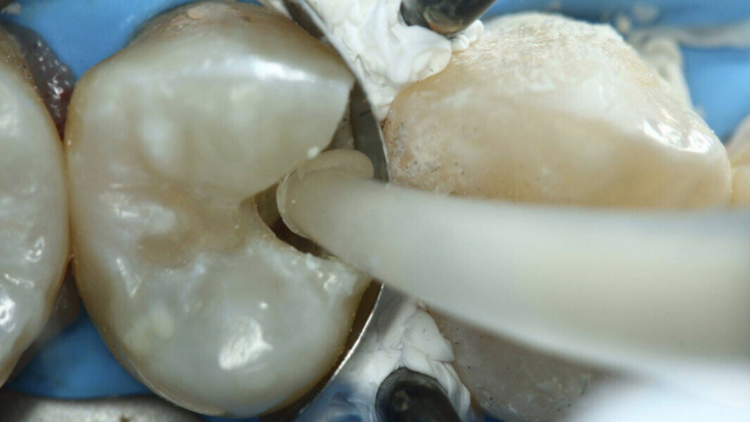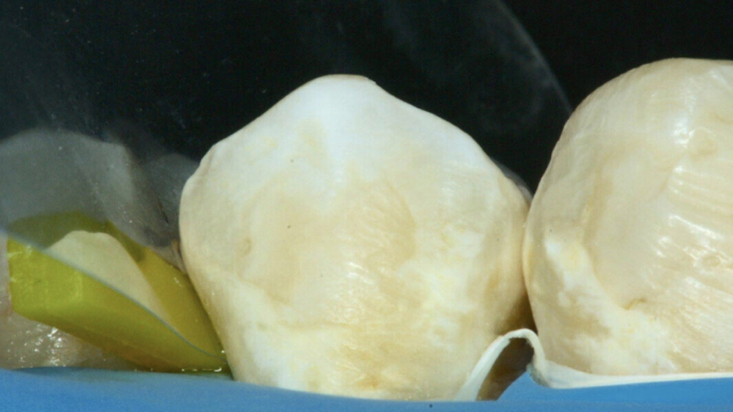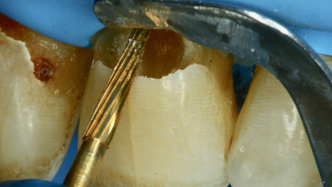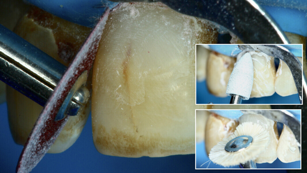 Figura 7. Se utiliza una fresa multilaminada para mejorar el mimetismo y la adhesión al esmalte.