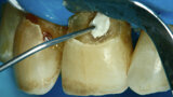 Figura 20. Después de aplicar anestesia tópica se procede con mínima apertura del esmalte