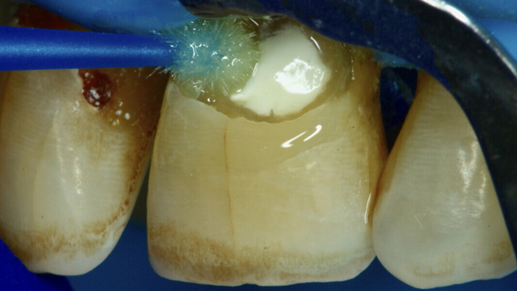 Figura 13. Condicionamiento del esmalte mediante la técnica de grabado selectivo.