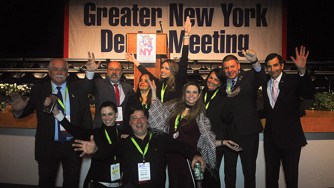 El grupo de líderes internacionales en Nueva York, con el Presidente electo del Greater New York Dental Meeting, Dr. James Doundoulakis que asume su posición en enero, y el Presidente en funciones, Dr. Lauro Medrano. (Foto: José Antonio Rosario para Dental Tribune)