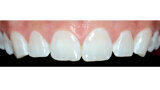 Foto 11. Imagen después de las reconstrucciones de los bordes incisales de los centrales y caninos con Resina Forma.