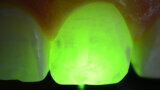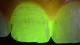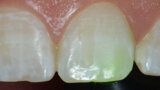 Foto 2. Diente 21, donde se observa el comportamiento de las manchas blancas cuando colocamos el lente de la transiluminación (Valo).